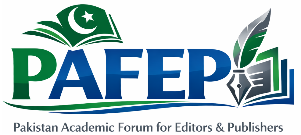 The Pakistan Academic Forum for Editors and Publishers (PAFEP) is a professional platform established to support, connect, and empower academic editors and publishers across Pakistan and the wider scholarly community. The forum is committed to promoting excellence, transparency, and integrity in academic publishing by encouraging the adoption of international editorial and peer-review standards.